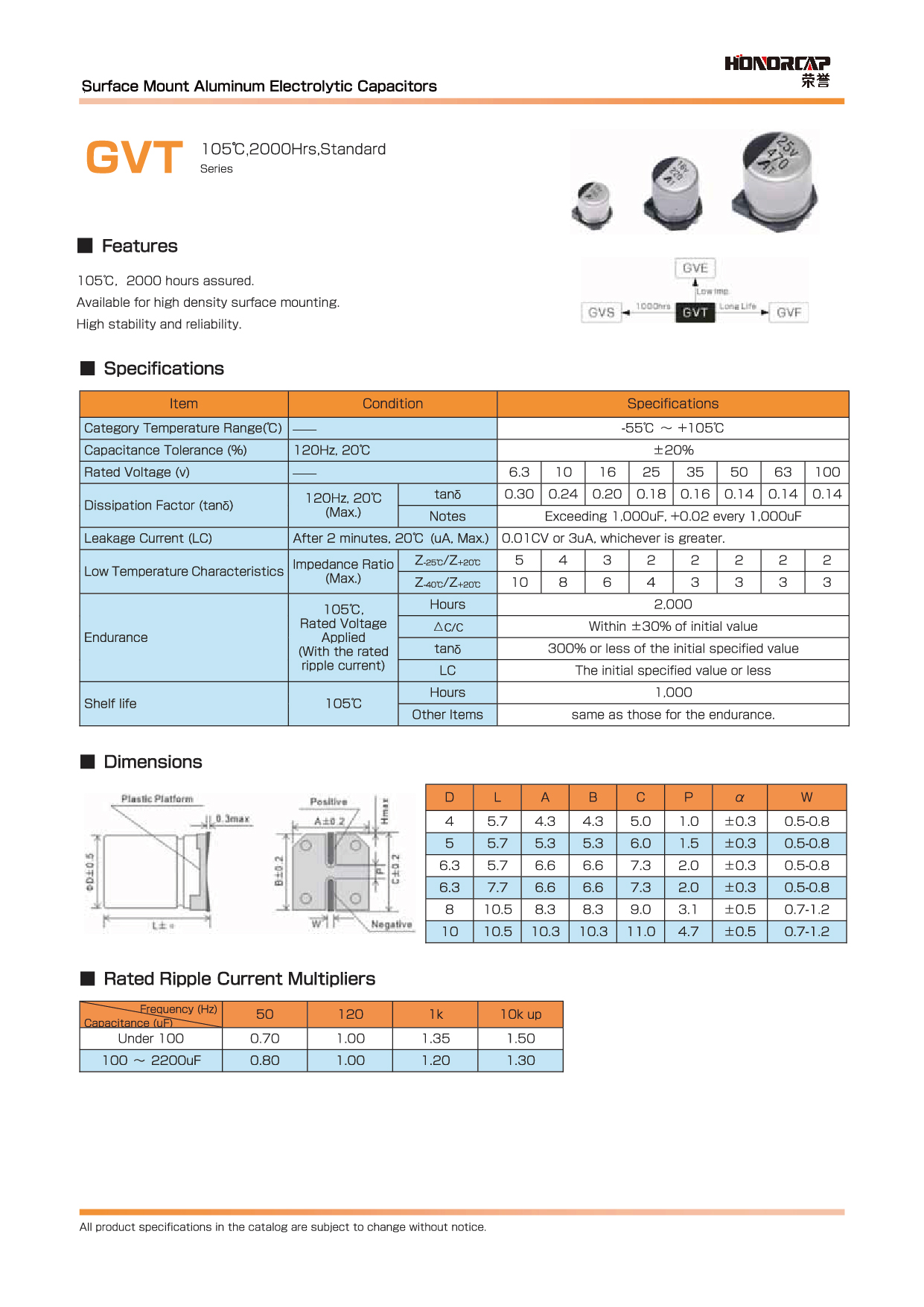 适用-55°C~+105°C温度范围,寿命2.000小时:性能稳定,可靠性高:产品直径:Ф4mm~Ф16.5mm