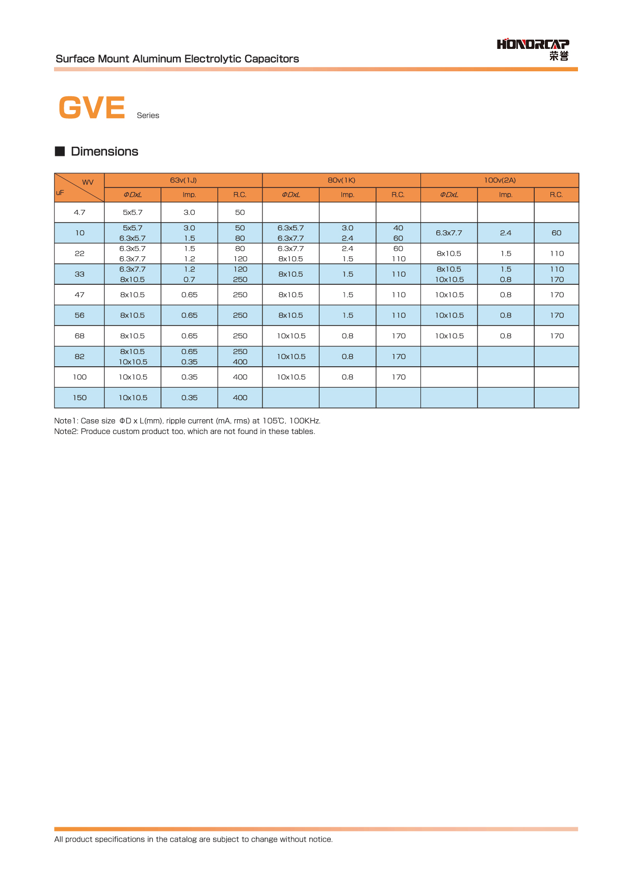 适用-55°C~+105°C温度范围,寿命2000-3000小时:性能稳定,可靠性高:产品直径:Ф4mm~Ф16.5mm