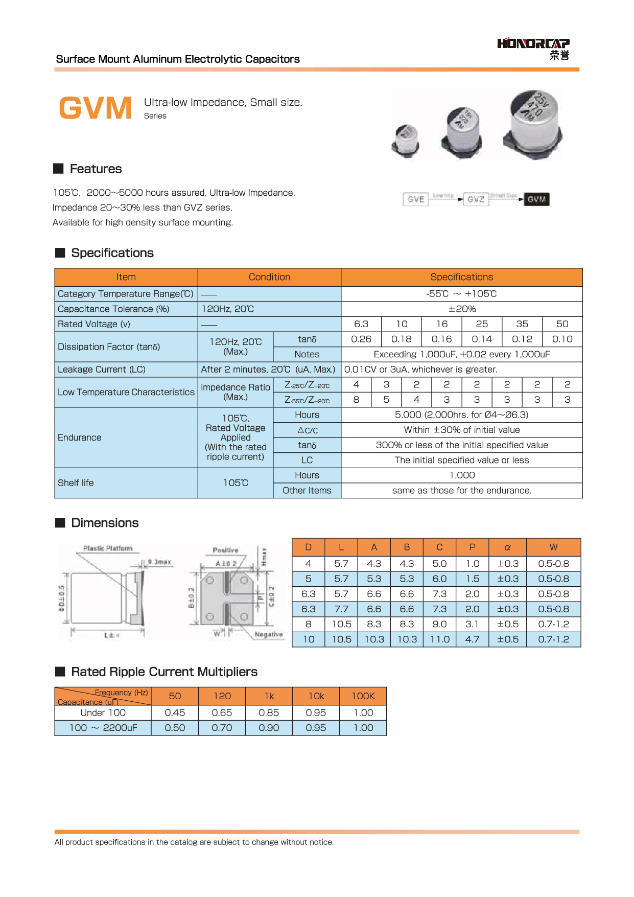 适用-55°C~+105°C温度范围,寿命2000-5000小时:性能稳定,超低阻抗。