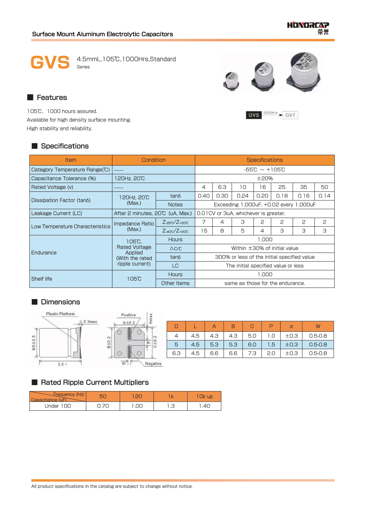 适用-55°C~+105°C温度范围,寿命7000-10000小时:性能稳定,可靠性高.适用于高密度表面安装