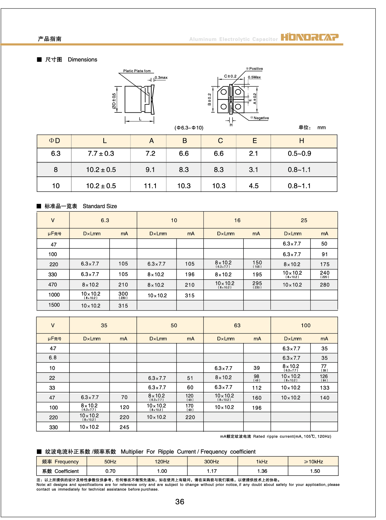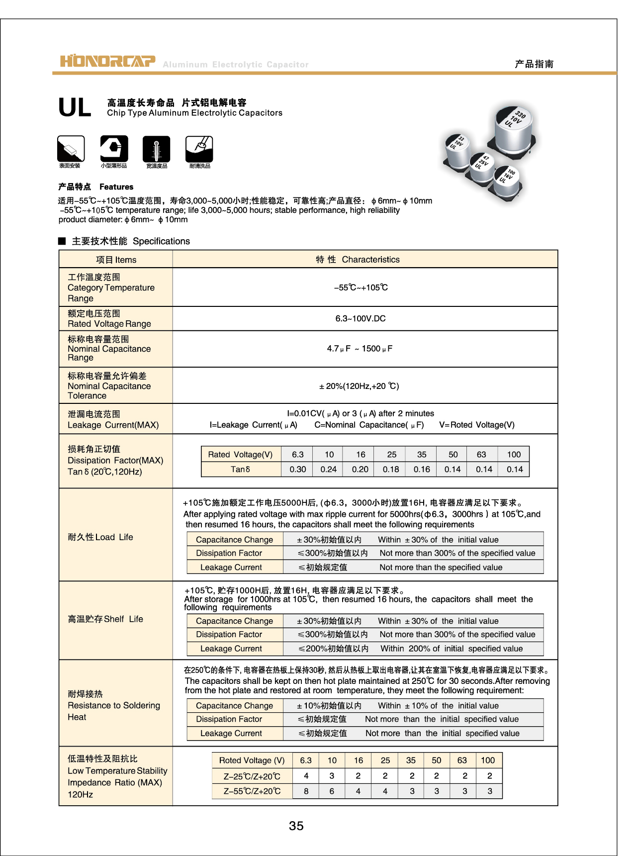 标准型, 片式铝电解电容 表面贴装型铝电解电容