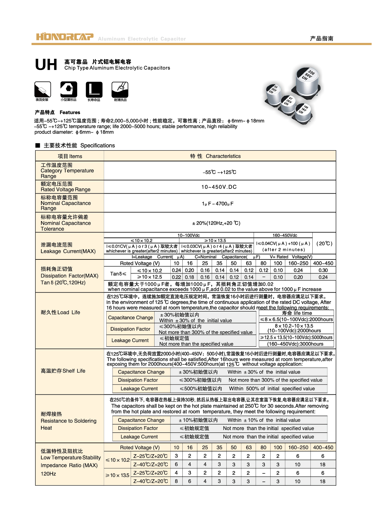 适用-55°C~+105°C温度范围,寿命2000-5000小时:性能稳定,可靠性高.产品直径:6mm-18mm